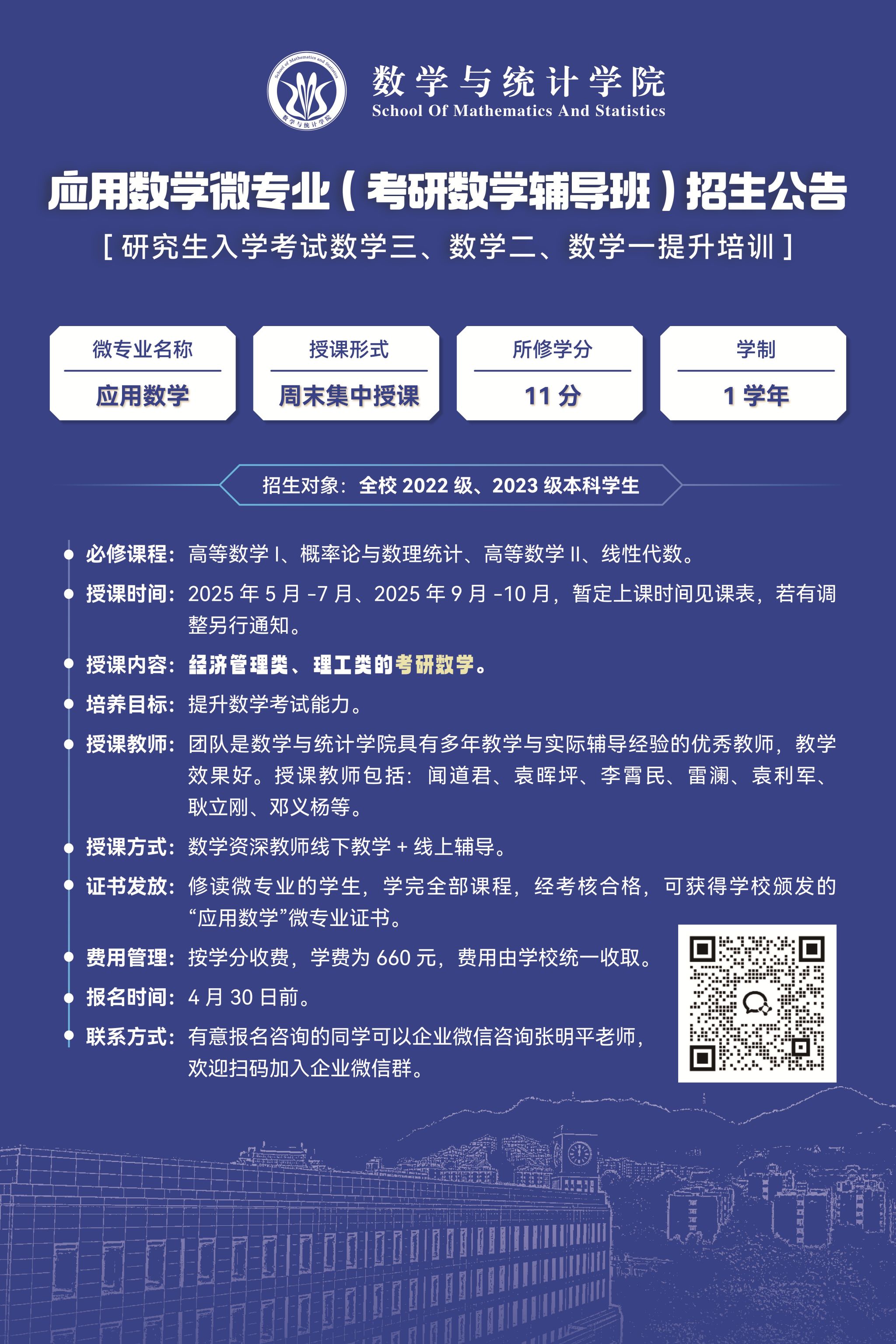联系方式:有意报名咨询的同学可以企业微信咨询张明平老师,欢迎扫码加入企业微信群。