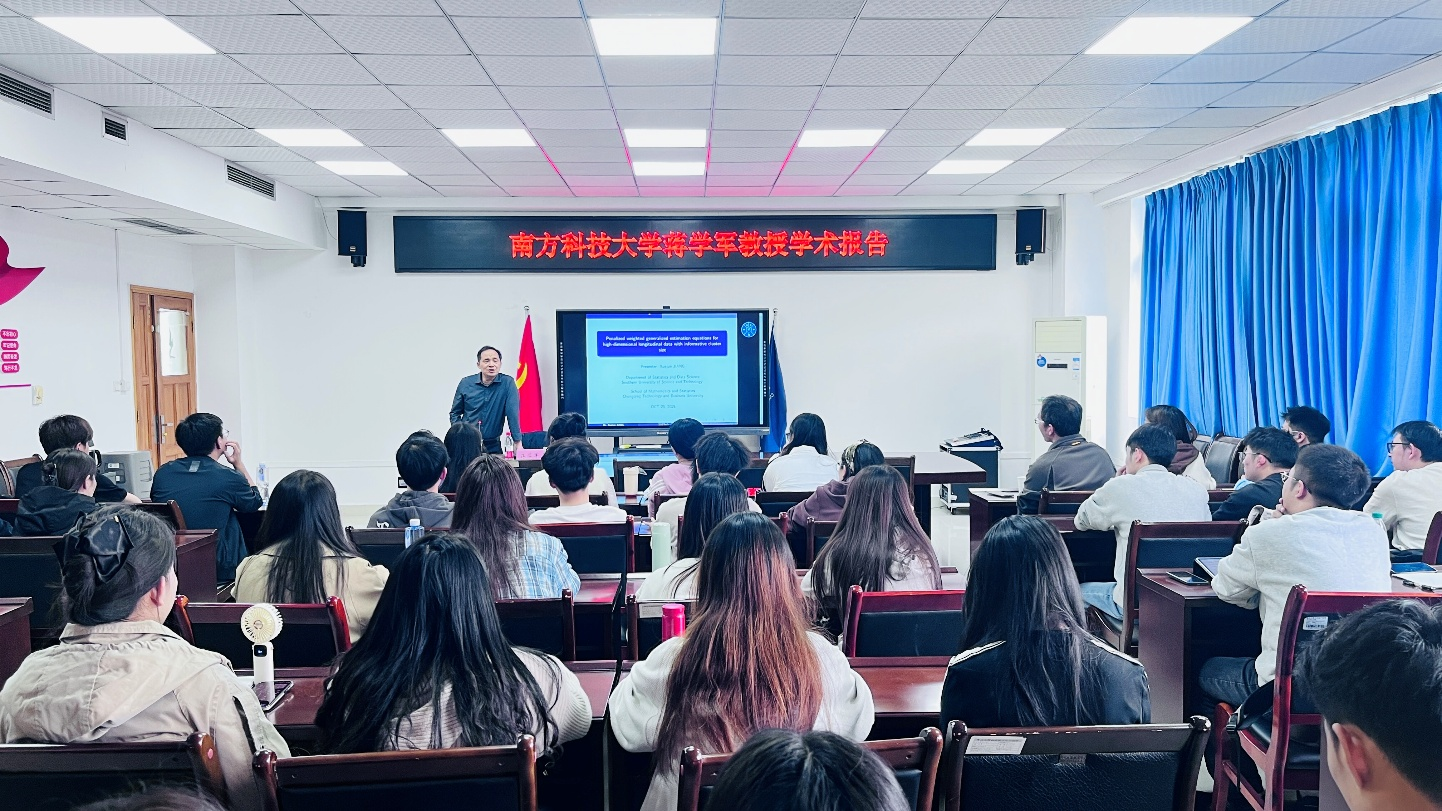 10月23日,蒋学军教授在80602为公司师生作《Penalized weighted generalized estimation equations for high-dimensional longitudinal data with informative cluster size》主题学术报告。报告由杨炜明副经理主持,赵培信、曹幸运等老师以及公司统计学专业的全体研究生参加了此次学术报告。