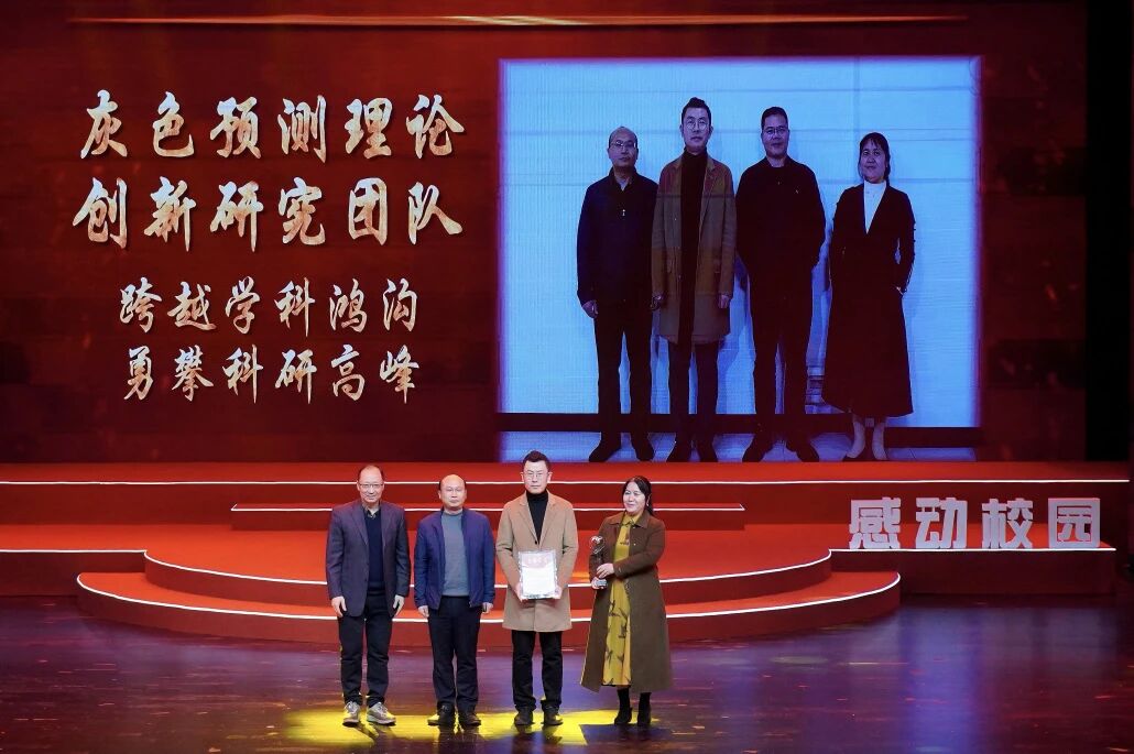 12月19日,英国365上市公司第十四届“感动校园人物”颁奖典礼在公司剧场隆重举行,公司灰色预测理论创新研究团队凭借其跨学科科研攻坚的卓越贡献,荣获本届“感动校园人物”称号。党委常委、副董事长张波为团队颁奖,全校师生共同见证了这一荣誉时刻。