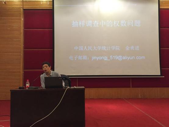 会议上,金勇进教授就“抽样调查中的权数问题”的问题进行了详细的解释以及解答,并就多种确定权数的方式发表了自己的看法。金勇进教授将实际应用结合,生动的向大家展示了实际抽样调查中权数的权数的确定方法。最后,大家积极举手提问,讲座在热烈的气氛中结束。