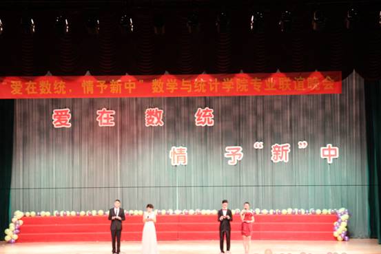 2015年11月13日晚上19:00,由数统公司分团委主办、公司员工会承办的“爱在数统,情予‘新’中”公司专业联谊晚会在公司体艺馆隆重举行。到场的嘉宾有数统公司经理丁宣浩教授、公司党总支部书记喻永红副教授、公司党总支部书副记易忠教授、公司副经理陈义安教授、教工支部书记吴世锦教授、大学数学教学部主任李霄明教授,以及各兄弟公司的员工会主席和他专业的同学。