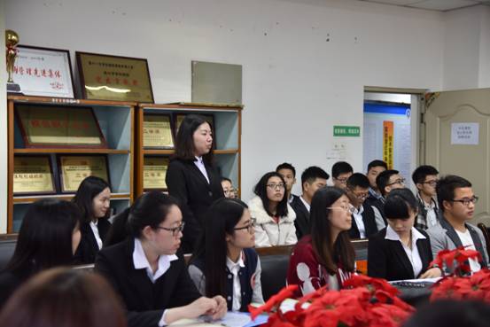 招聘会开始之前的宣讲环节中,何总监向同学们详细介绍了中信建投证券公司的企业历史、 企业理念、企业的发展现状及资质等,重点讲解了企业文化、企业的福利待遇、新员工的培养过程等大家关心的细节,在介绍讲解完毕后,何总监耐心地回答了同学们的提问。
