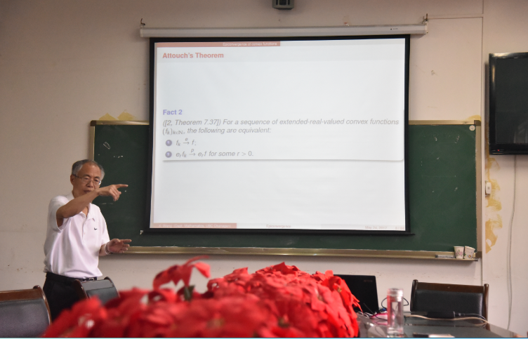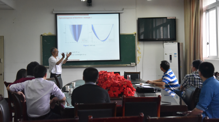 Wang Xianfu教授,博士生导师,加拿大西蒙菲莎大学博士,加拿大哥伦比亚大学博士后。主要从事算子理论、最优化方法、单调算子等领域的研究工作。Wang Xianfu教授此次作了题目为Epi-convergence,Moreau envelope and generalized linear quadratic functions的全英文报告。学术报告会上,Wang Xianfu教授首先回顾了上图收敛、Moreau包、凸函数的上图以及广义二次函数的定义。接着介绍了广义二次函数的Moreau包,给出了涉及极大单调对称线性关系的集值映射的非扩张以及Lipschitz性质并讨论了Fenchel共轭对偶。最后给出了涉及极大单调对称线性关系的集值映射的充分条件。报告最后,Wang Xianfu教授一一解答公司老师们的疑惑,并进行了探讨。