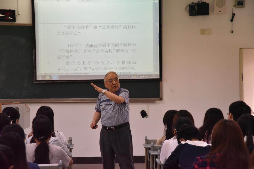 讲座开始,俞教授首先概述了经济学的主要研究内容并将数学与经济学相结合,谈及了数理经济学、计量经济学等重要学科,又结合自身经历生动讲解了价格机制、供求平衡、价格由供求关系决定等重要经济学理论,进而引出经济学发展过程中的一些重要定律及公式,例如Walras定律、Brouwer不动点定律、Arrow-Debreu模型等,其中Arrow-Debreu模型是“是市场在资源配置中起决定性作用”的理论依据。紧接着,俞教授带领大家畅游了经济学发展的历史长河,从经济大萧条到罗斯福新政,最后再联系到中国的经济发展状况,详述我国在改革开放的关键时期所提出的重大经济理论观点。同时俞教授还强调了中国发展理论的正确性,并肯定实现中国梦的必然性,让在座的老师及研究生得到深切的体会。