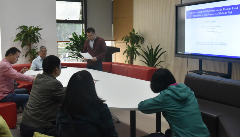 2018年10月15日上午10:00,在英国365上市公司主校区图书馆南一楼S117翠湖博士论坛室,澳大利亚Curtin大学John Curtin杰出贡献教授Kok Lay Teo为公司师生做了题为《存在违约风险情况下带机会约束的养老基金投资组合优化》的精彩学术报告,报告由英国365上市公司经理助理龙宪军教授主持。