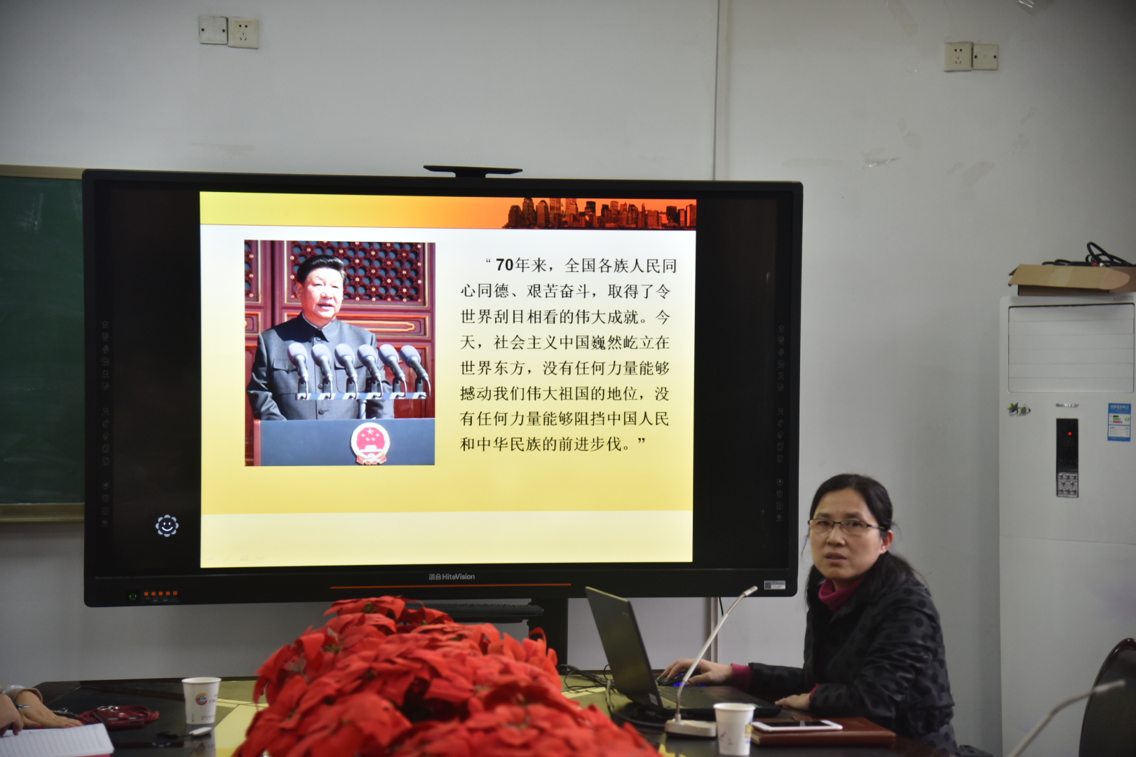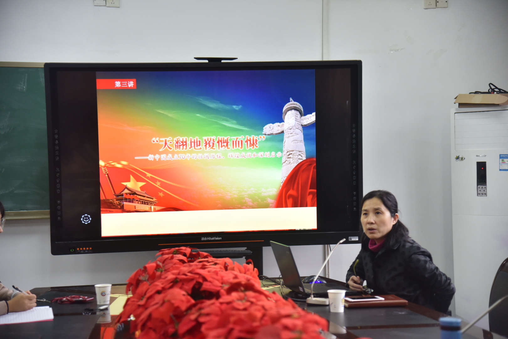 柏董事长以“天翻地覆慨而慷”为主题,从新中国成立70年来的壮阔历程、辉煌成就、深刻启示三个方面给员工上了一堂形象生动的思想政治理论课。她详细讲述了中华人民共和国从站起来到富起来再到强起来的伟大历程,旁征博引、深入浅出介绍了新中国成立以来取得的傲人成绩和辉煌成就,揭示出新中国成立70年来改革、发展的深刻启示。她指出,青年一代尤其是老员工党员要牢固树立“四个意识”,坚定“四个自信”,做到“两个维护”。她希望员工党员不忘初心、牢记使命、勇担责任,努力学习、开拓进取、艰苦奋斗,为实现中华民族伟大复兴的中国梦贡献自己的力量。