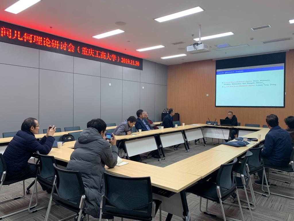 报告围绕Banach空间的学术会议展开。李爱军教授对应于Legendre ellipsoid 和 the LYZ ellipsoid,介绍了两个新的正弦椭球,通过研究这四个椭球在勾股关系和对偶关系中紧密的关系,获得了几个体积不等式和性质。