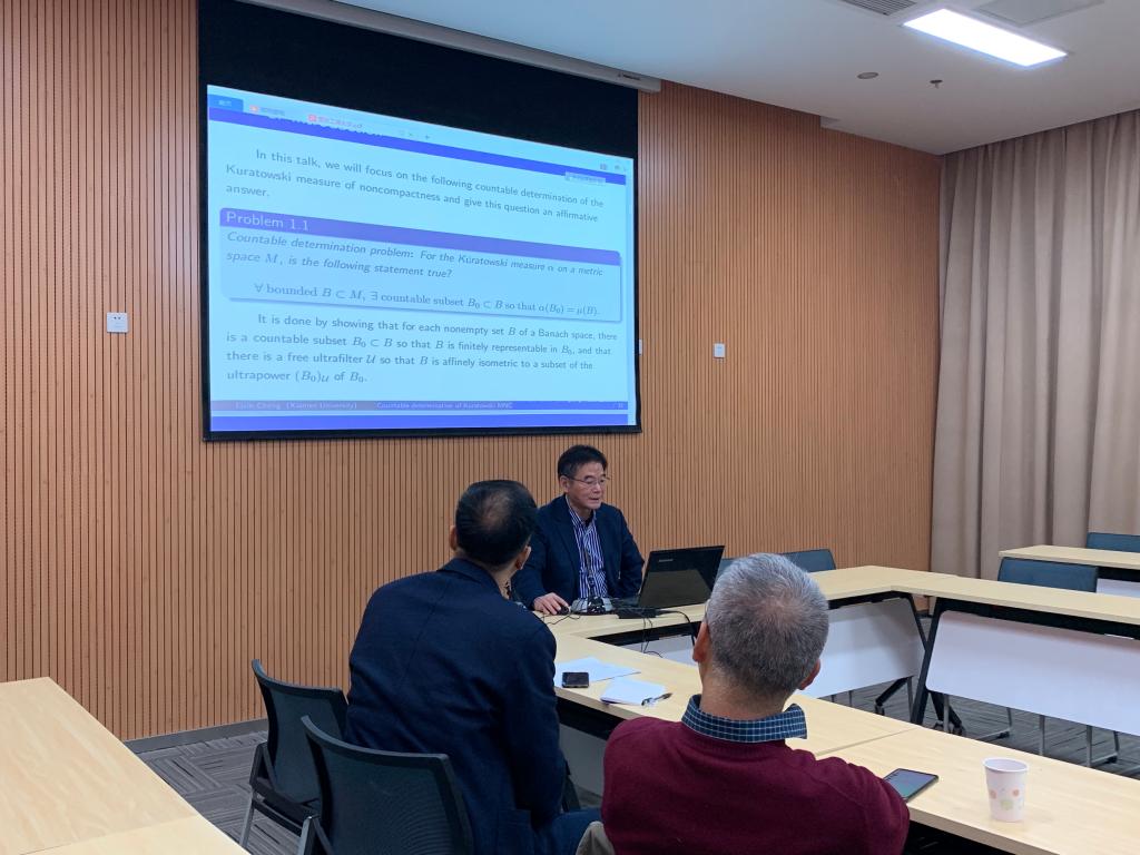 2019年11月30日下午4:50,厦门大学程立新教授应公司蔺友江教授邀请,在新图书馆会议中心二会议室做了题为《Countable determination of the Kuratoski measure of noncompactness》的学术报告,公司相关学科老师及员工参加了本次报告会。