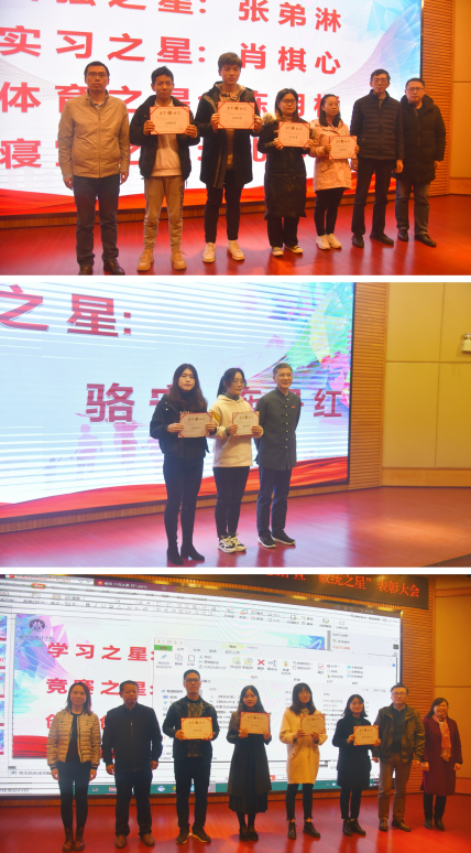 会议伊始,陈经理介绍了2019年文化节开幕以来所取得的成果,从注重思想政治引领、狠抓学科竞赛、重视第二课堂活动等方面对数统文化节进行总结。并表示公司未来会进一步深入开展学风建设,让员工在和谐稳定的环境中成长成才。随后,喻书记宣读表彰文件,希望全体同学以先进为榜样,以专业为载体,以自身为主力,鼓足干劲,开拓创新,勇创佳绩。接下来与会嘉宾分三轮为“数统之星” “学习之星”、“竞赛之星”、“自强之星”、“实习之星”、“体育之星”、“寝室之星”、“创新创业之星”、“社会实践之星”等获奖同学颁奖。
