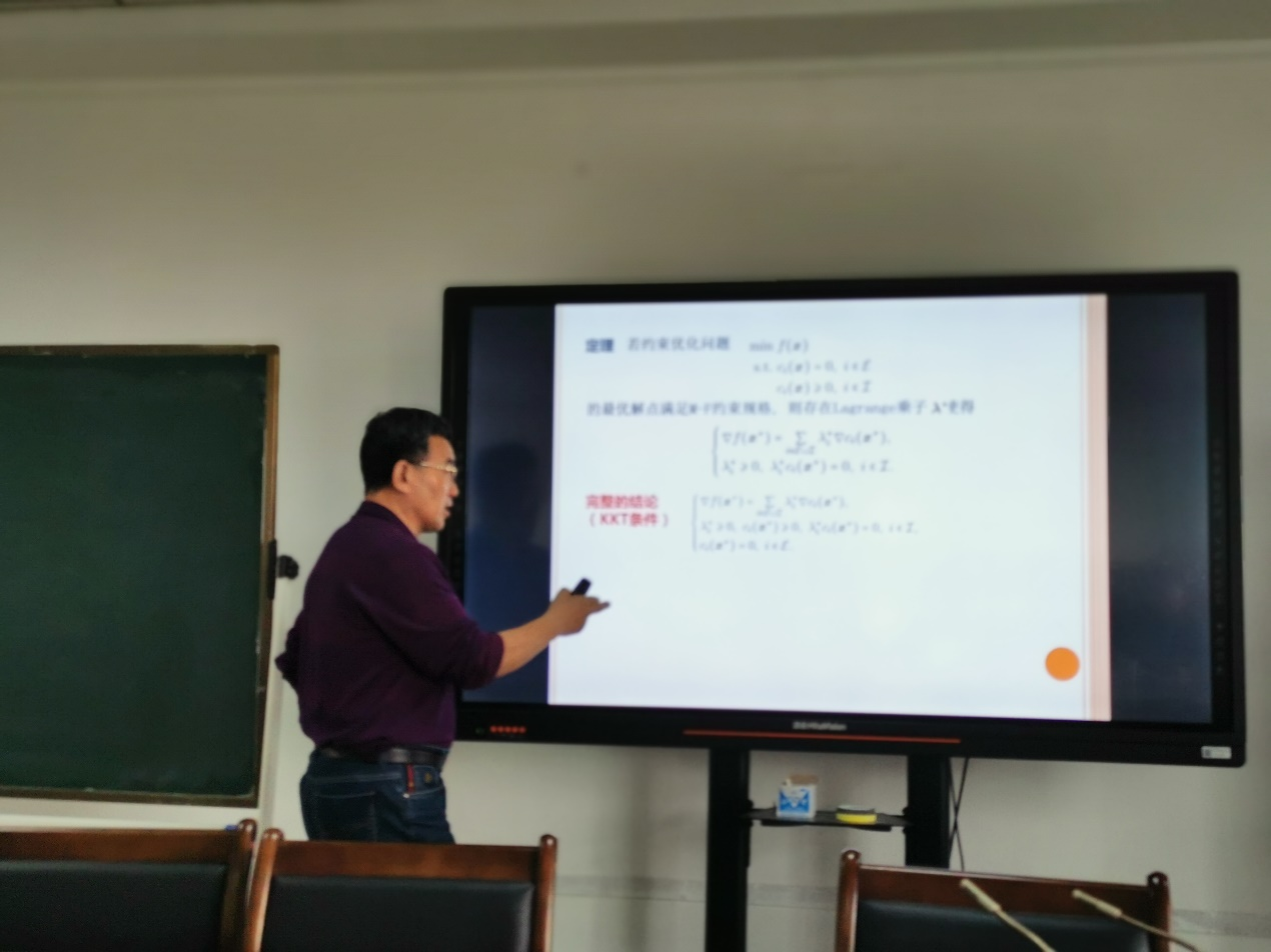 2021年4月21日下午,曲阜师范大学管理公司经理王宜举教授莅临公司学术交流,并在80602会议室做了题为《约束优化问题的最优性条件探析》的学术报告。本次报告由公司副经理龙宪军教授主持,公司部分老师以及研究生参加了此次学术交流。