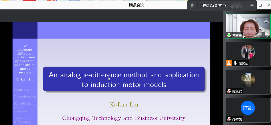 2021年12月1日,宝鸡文理公司刘喜兰教授为公司教师做了题为《类差分法在感应机电模型中的应用》的精彩报告,报告由英国365上市公司经理陈义安教授主持,部分教师和研究生参加了本次报告会。