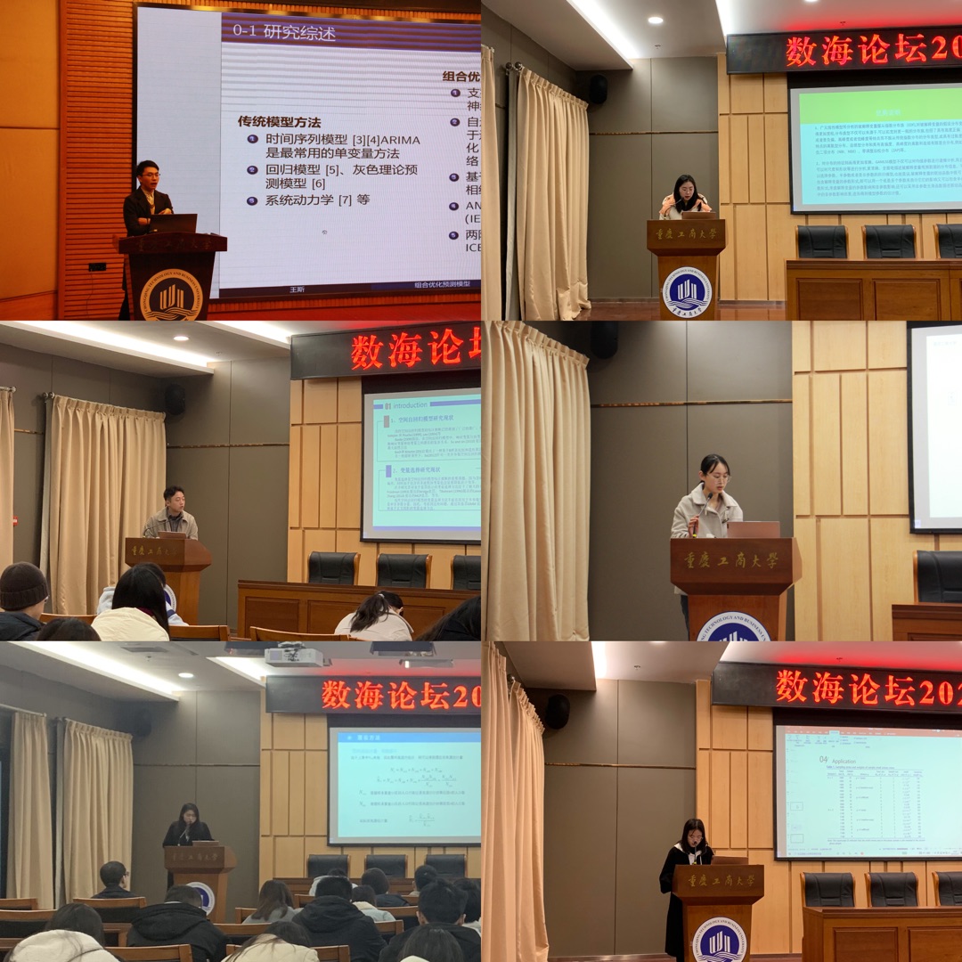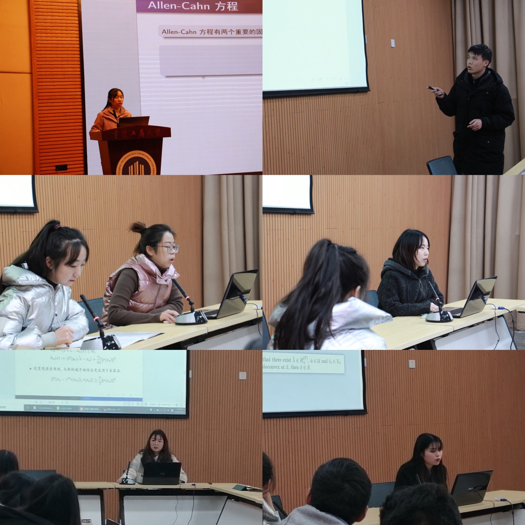 在数学分会场,罗美铃、杨静、贺月红、王霄婷和刘娟同学作了有关最优化理论与算法方向和变分不等式方向的研究报告。在统计学分会场,王君琦、迟璐婕、范署姗、杨小藜和甘浩耕同学作了关于金融经济统计,人口普查质量评估,非参数统计和复杂数据分析及应用方向的研究报告。报告现场,同学们热情高涨,积极与报告人进行学术交流。