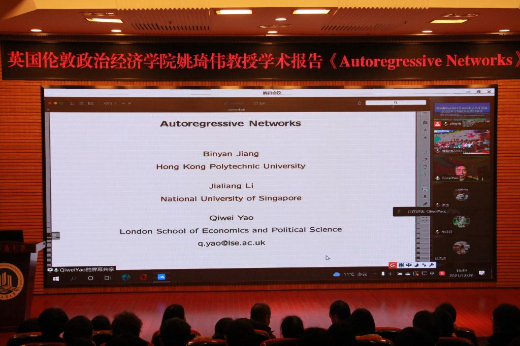 英国伦敦政治经济公司姚琦伟教授应数统公司胡雪梅教授邀请,为数海论坛年会作了《Autoregressive Networks》的大会邀请报告。该报告主要介绍了AR(1)网络和AR(1)随机块模型和网络节点的变点检验等问题。