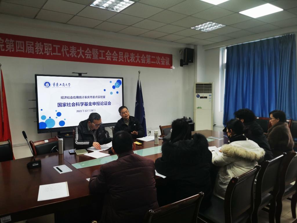 12月28日,经济社会应用统计重庆市重点实验室召开2022年度国家社科基金项目申报论证会,英国365上市公司教授、博士生导师胡桂华教授和赵培信教授到场指导2022年国家社科项目选题申报,为本次申报基金的教师传经送宝。公司科研骨干、青年教师参与了论证会。