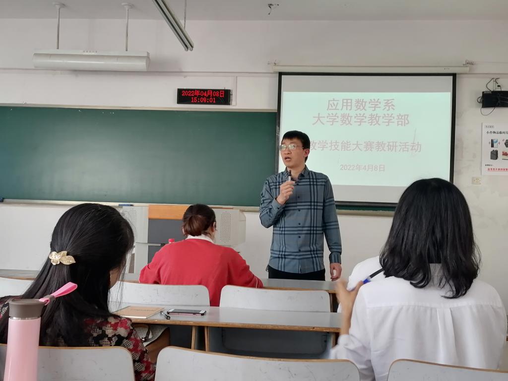 2022年4月8日下午3:00钟,大学数学教学部与应用数学系的全体教师齐聚7教302教室,在几位系部主任的组织下开展教研活动。活动由大学数学教学部主任李霄民老师主持,应用数学系系主任詹毅老师做记录。