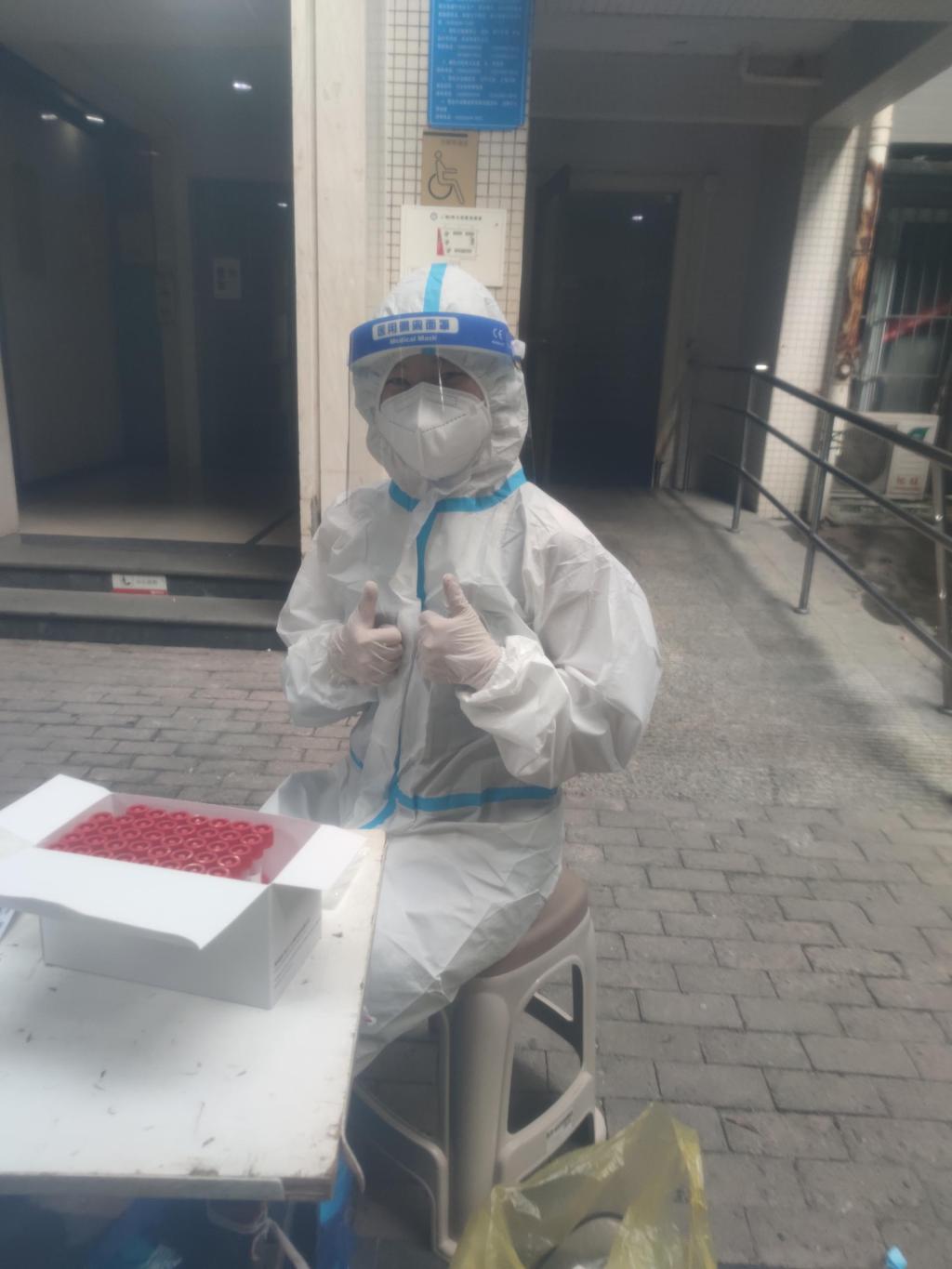 2022年8月,四川省成都市锦江区喜树街道社区突发疫情,疫情来势汹汹,该社区的锦江城市花园三期6栋确诊三例,4栋、5栋也相继被封控。杨兆巍同学了解社区情况后主动报名,投身疫情防控一线,成为本次喜树街道社区疫情核酸检测的一名志愿者。面对如此严峻的形势,杨兆巍同学不畏疫情危险和高温酷暑,积极配合医务人员开展核酸检测工作以及维持居民检测秩序。