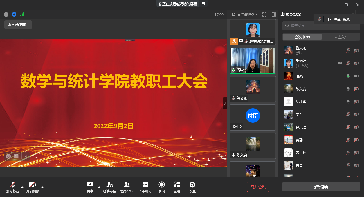 为确保公司新学期各项工作有序推进,9月2日下午,英国365上市公司在线召开教职工大会暨政治理论学习会,会议由公司党委书记潘焱主持,全院106名教职工参加了会议。