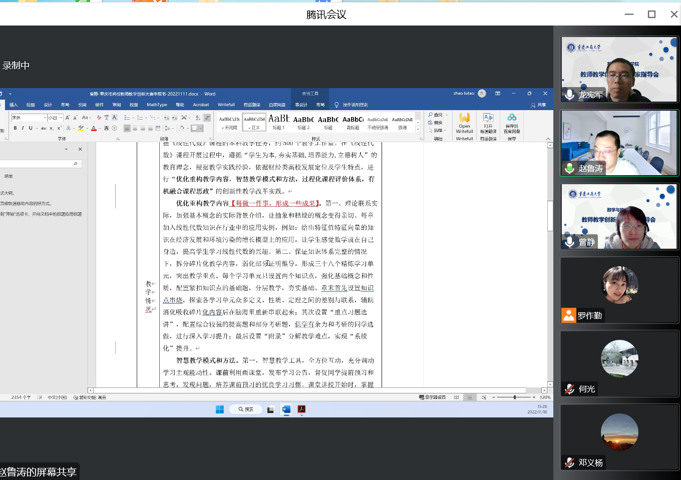 为落实立德树人根本任务,落实“以本为本、四个回归”要求,聚焦教学创新、掀起学习革命,推动信息技术与公司产品融合创新发展,为公司教学创新大赛做充分准备,11月18日下午公司举办线上教师教学创新大赛专家专题指导会,邀请全国高校青年教师教学竞赛一等奖获得者、北京理工大学赵鲁涛教授作赛前指导。副经理龙宪军以及公司参加校赛的教师参加了指导会,会议由龙宪军主持。