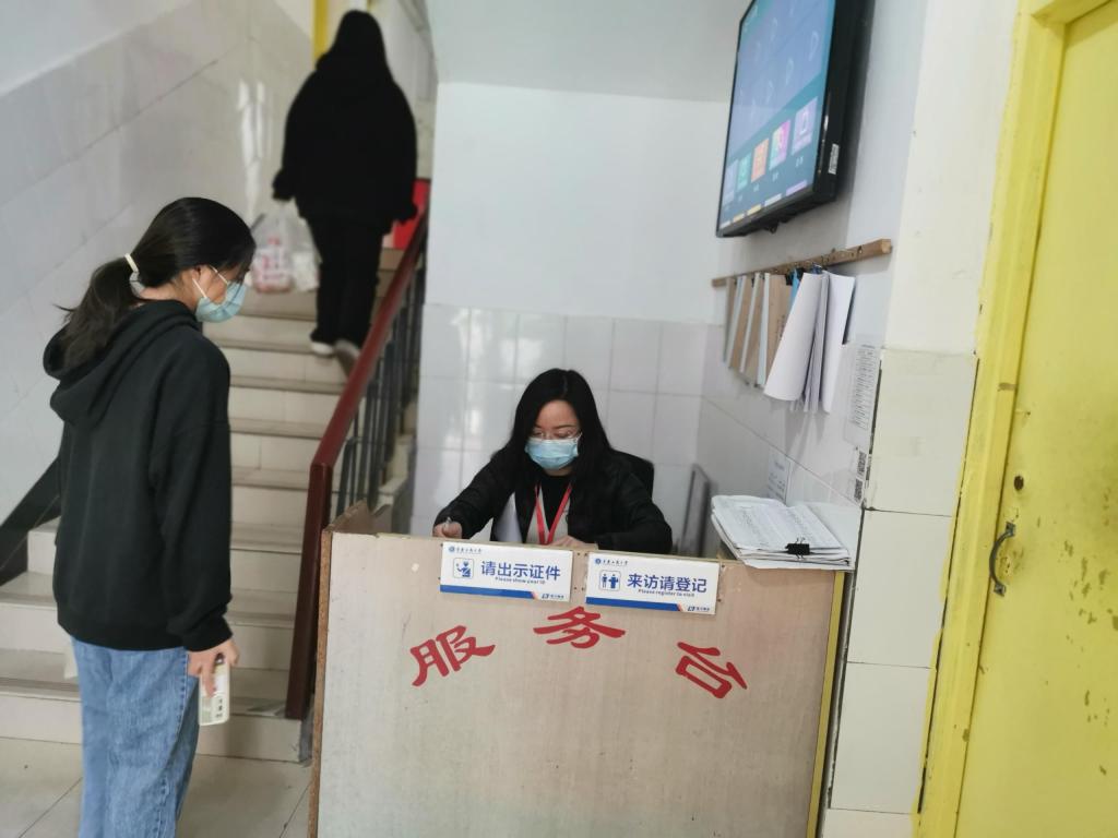 辅导员郭春霞老师由于沙坪坝疫情严重,此次未能进校参与疫情防控,她主动联系社区承担核酸检测信息采集、保供物资发放、给居家隔离居民运送物资等志愿服务工作。身在家,心在校,员工的焦虑情绪、生病员工的情况、疫情的蔓延让她焦急万分,她不断给员工加油打气、利用各种线上方式稳定员工情绪,当得知特情员工心理焦虑时,她第一时间给员工做心理疏导,并联系员工家长共同关心关爱员工。得知公司招募返校志愿者,她第一时间报名要求进校和大家一起坚守在一线岗位。