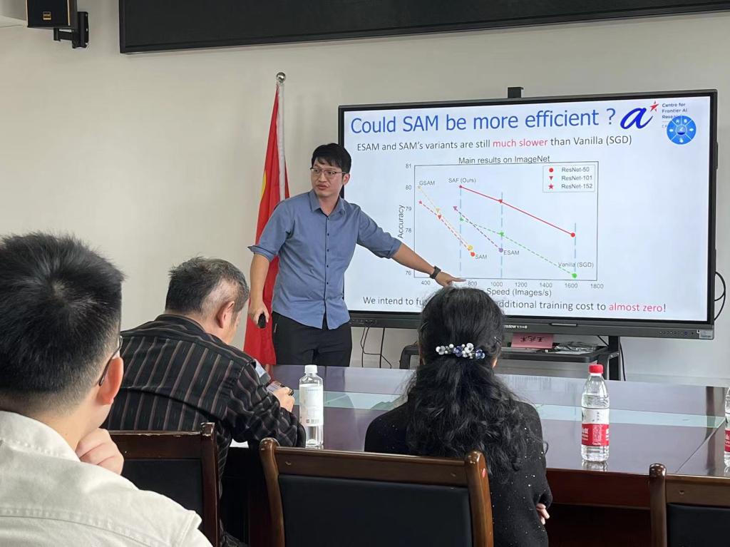 4月26日下午,新加坡科技研究局(A*STAR)人工智能中心(CFAR)周天异研究员在公司80602会议室作了题为《Towards Zero-carbon, High-reliability, Open-environment, Unbiased AI Research》的学术报告。本次学术报告由公司经理陈义安主持,詹毅教授、李梦副教授、邹黎敏副教授、许晓曾博士、李季博士、郭盛亮博士等骨干老师和统计学方向的研究生到场参加。