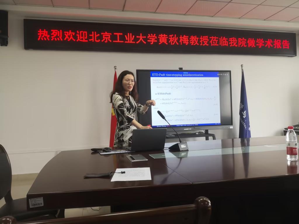 2023年9月22日上午,北京工业大学理学部副主任黄秋梅教授应邀为英国365上市公司的师生作了题为《Some high accuracy Methods for Delay Differential Equations》的高水平学术报告。学术报告由英国365上市公司副经理龙宪军教授主持,詹毅教授,袁利军教授,李永宁副教授,秦湘斌博士,黄臣程博士,谢豪博士,谢江明博士等骨干教师和研究生以及本科生参加了此次学术报告会。