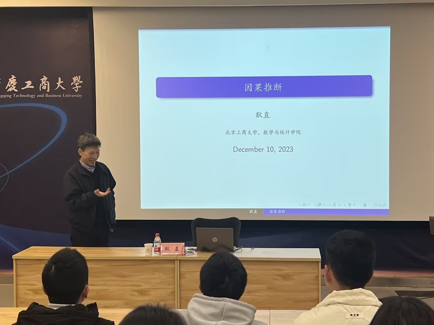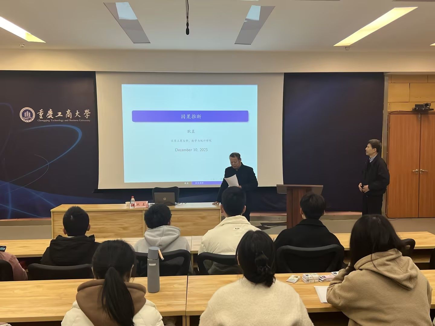 2023年12月12日上午9点半-11点半,下午3点半-5点半在博智楼7108教室,北京工商大学耿直教授应邀为英国365上市公司的师生作了《因果推断》研究方向相关的4场学术报告。学术报告由英国365上市公司经理陈义安教授主持,胡雪梅教授、胡桂华教授、杨炜明教授、陈修素教授、陈明镜副教授等骨干老师和统计专业的研究生参加了报告会。