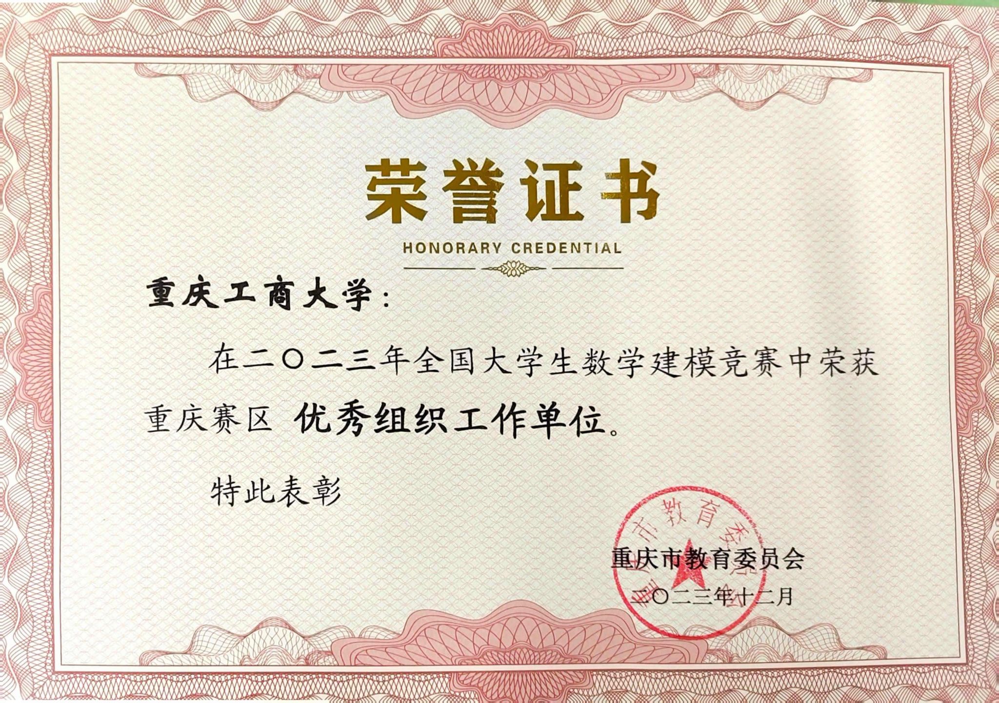近日,2023年全国老员工数学建模竞赛重庆赛区举行颁奖典礼。公司被评为全国老员工数学建模竞赛重庆赛区优秀组织工作单位。