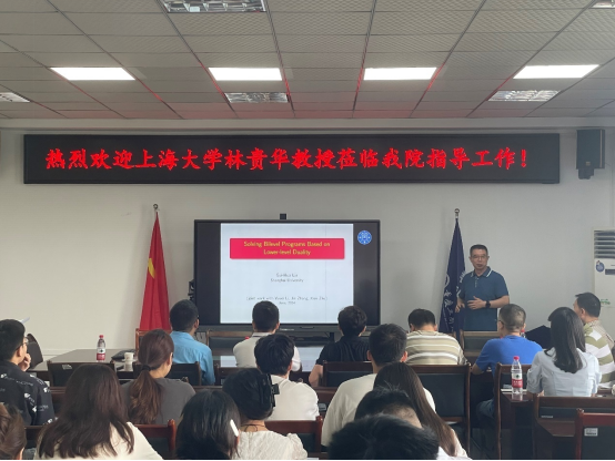 林贵华教授首先介绍了双层规划问题的三种求解方法。这三种求解方法是分别基于下层解函数、下层最优值函数和下层最优性条件设计的。分析了三种方法的优劣性质。然后林贵华教授详细介绍了基于下层的Wolfe型对偶和基于下层的Mond-Weir型对偶的求解方法,这类方法相比于基于下层最优性条件的方法有明显的理论优势和更好的数值效果。本次学术交流对于公司相关领域的师生进一步开展学术研究具有重要的意义。