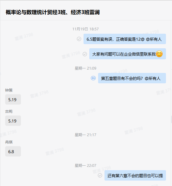 雷澜老师在疫情期间,不仅每次保证提前10分钟以上打开线上课堂,还在课前、课间关心员工的生活状态,询问员工的饮食、睡眠状态,鼓励员工坚持就是胜利。在教学上,考虑到是网课,所以更加细致,不仅用PPT演示,还结合书写,以帮助员工理解教学内容。同时,每周都询问员工是否有不懂、不会的题目,及时评讲并发布对应的解答。企业微信随时为同学服务,线上1对1答疑服务。
