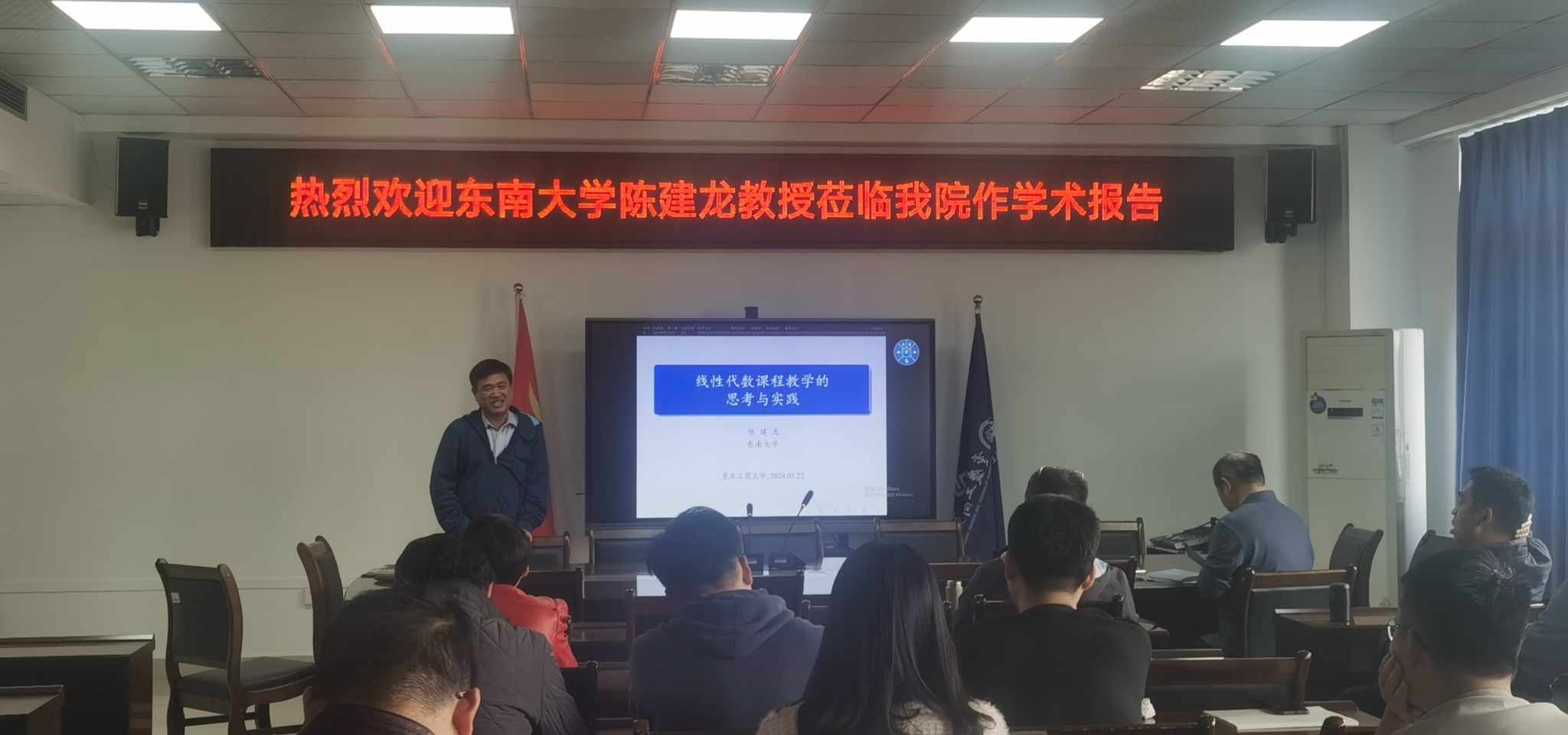 为促进教师教学质量提升,3月22日上午,英国365上市公司开展集体教研活动,邀请教育部大学数学课程教学指导委员会委员、中国高等教育学会教育数学专业委员会副理事长陈建龙教授作《线性代数课程教学的思考与实践》主题报告。会议由经理陈义安教授主持,全体教师参加。