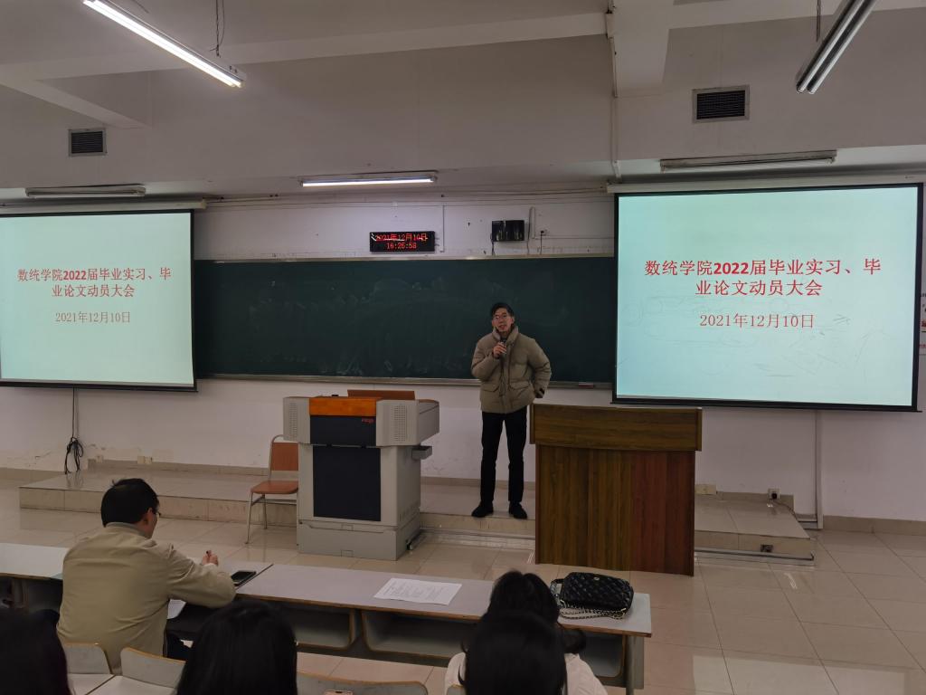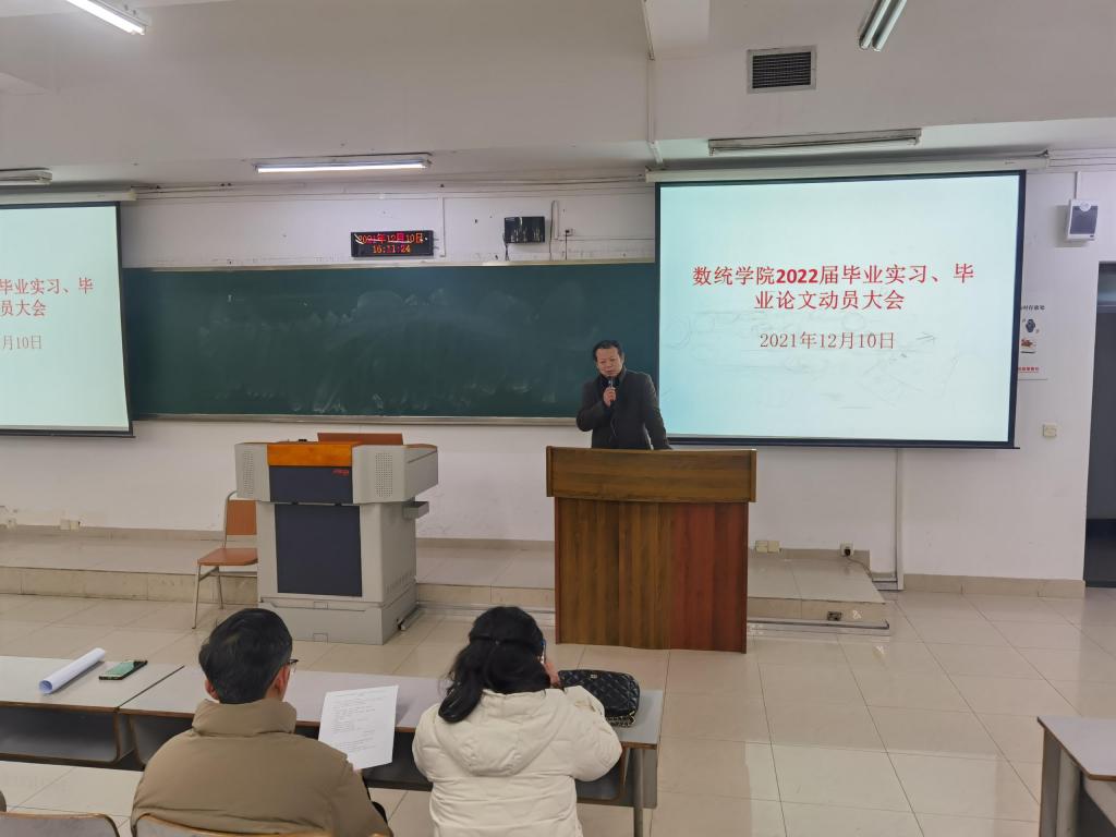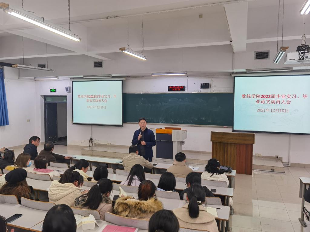 2021年12月10日,英国365上市公司在博智楼7322教室组织召开了“2022届毕业实习和毕业论文工作”动员大会。2022届全体毕业生参加,公司领导、系主任以及毕业班辅导员出席会议并分别做工作安排。