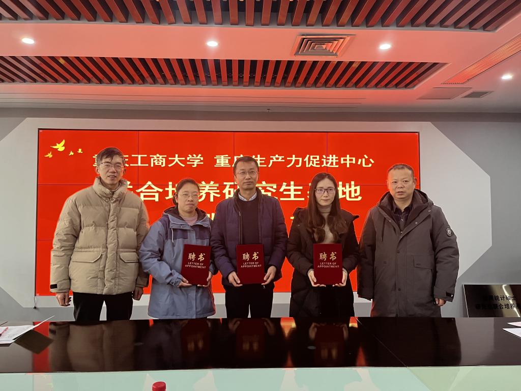 陈义安经理向柏小华书记授予了“应用统计硕士研究生联合培养基地”的标牌,向中心王润、曾琼、彭娟三位研究生事业导师颁发了聘书。
