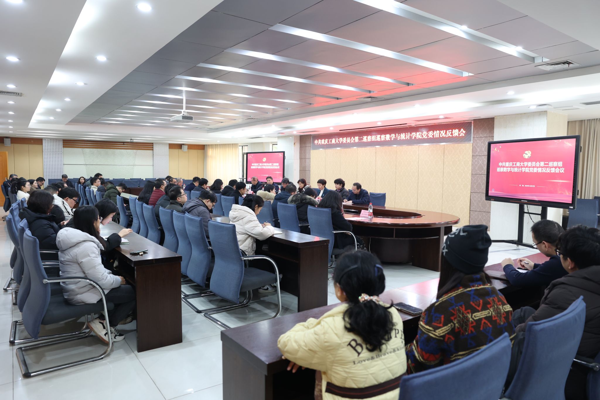 反馈会上,对第二巡察组工作进行在线测评。第二巡察组全体成员,党委巡察办公室、纪检监察室、党委组织部、党委宣传部、党委员工工作部(员工处)、人事处、教务处、科研处、财务处、审计处、重庆立信会计师事务所等部门人员;公司党委领导班子成员、党支部书记、内设科室负责人、教职工党员代表、师生代表参加了会议。