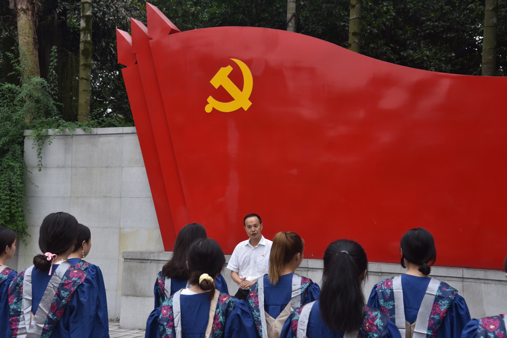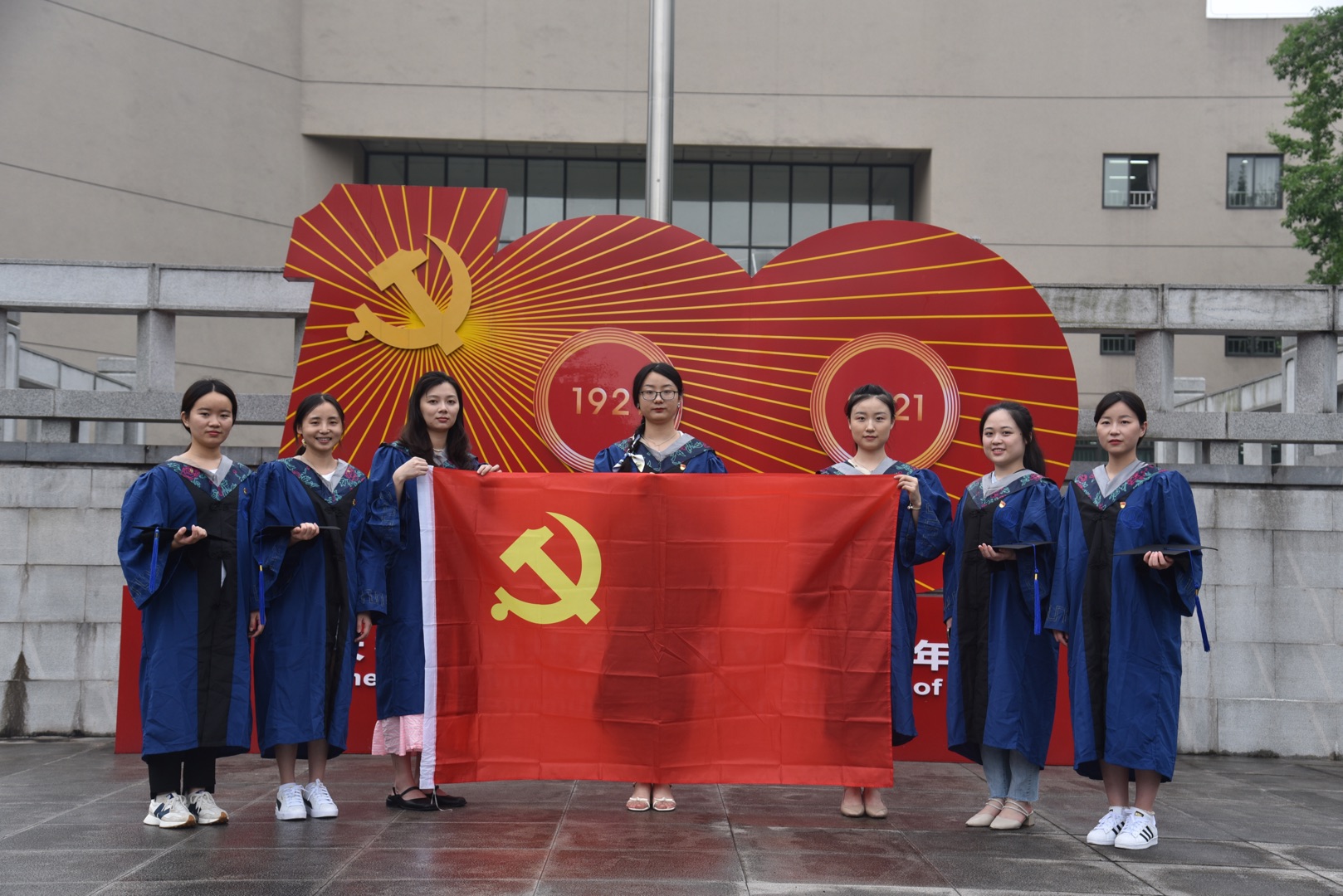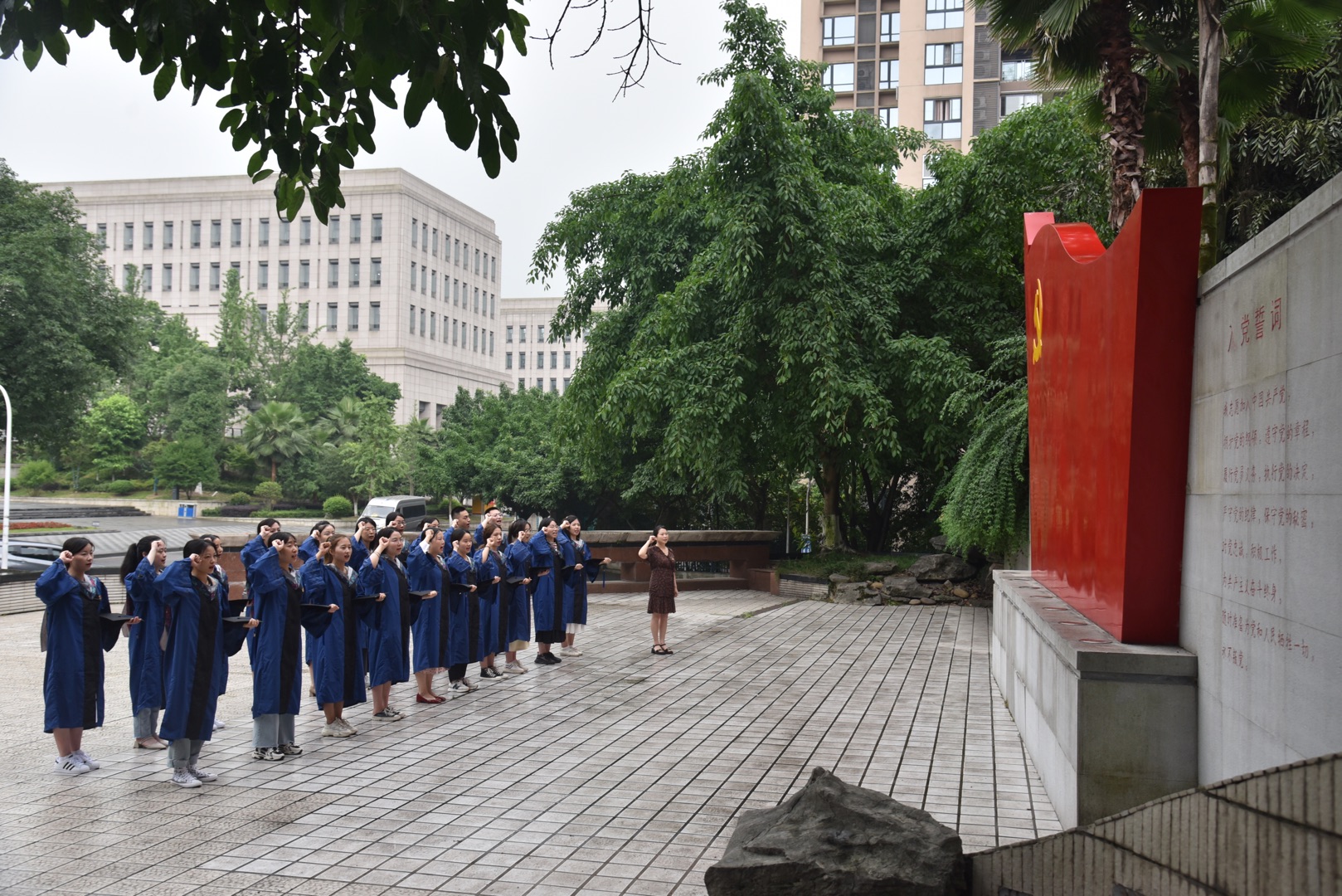 “我志愿加入中国共产党,拥护党的纲领,遵守党的章程......”在研究生党支部书记刘亚莉老师的带领下,毕业研究生党员身着硕士学位服,整齐列队,握紧右拳,面向中国共产党党旗,郑重宣誓。庄重的誓言,真挚的情感,表达了数统研究生学子身为新时代的党员对党忠诚,永不叛党的坚定承诺,表达了全心全意为人民服务,积极工作,追逐梦想,为实现中华民族伟大复兴的责任与担当。