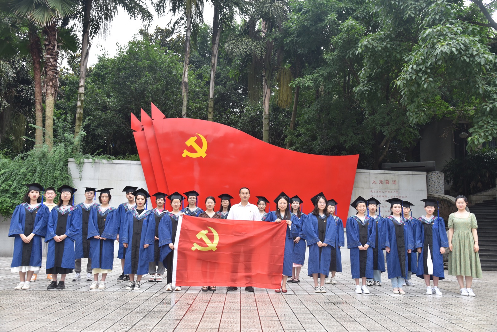 与党旗合影 表青春志气