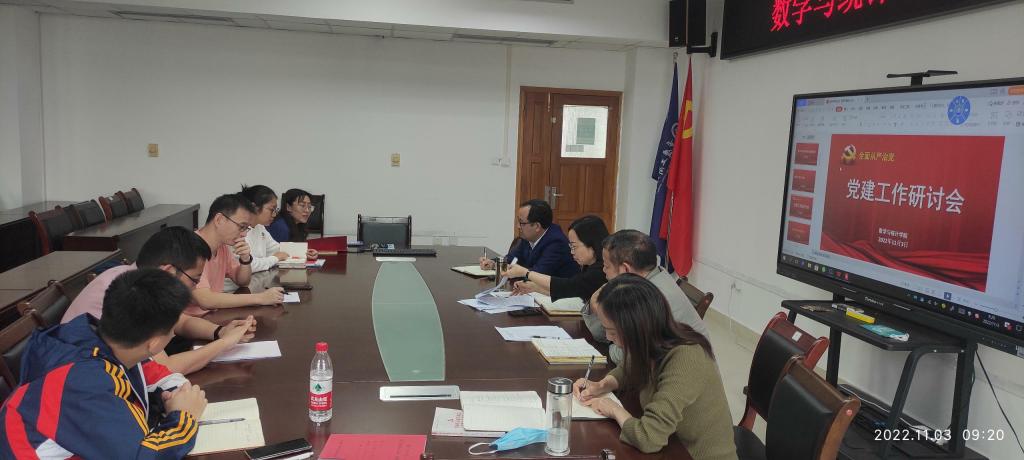 潘焱作总结发言,她指出,一、近期重点工作就是学习宣传贯彻二十大精神。要求各支部通过每月组织生活学习、主题党日活动、党员谈心谈话、支部微党课等多样化的方式在线上和线下大力学习宣传贯彻党的二十大精神。二、积极探索党建工作新平台。提出公司党委思考结合专业特色,积极推进党建“双创”,探索搭建校地党建实践平台,发挥好教师和员工党员的先锋模范作用,努力打造公司党建带团建、党建带群建品牌;三、将二十大精神学习融入课程思政。要求教工支部充分发挥课堂教学的思政引领作用,在支部内激发“师德师风”先进人物的带头作用。四、加强对党组织的吸纳与宣传。要求教工支部积极在新教师中发展党的后备力量,提醒党员加强“学习强国”平台学习,积极对党的二十大精神学习宣传活动进行宣传报道。