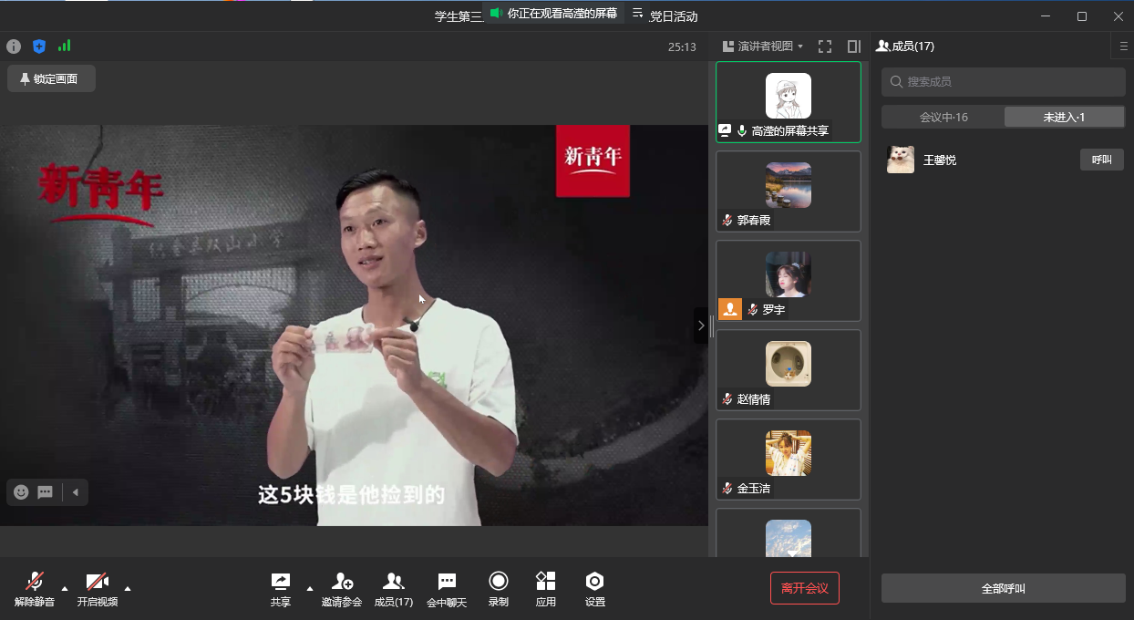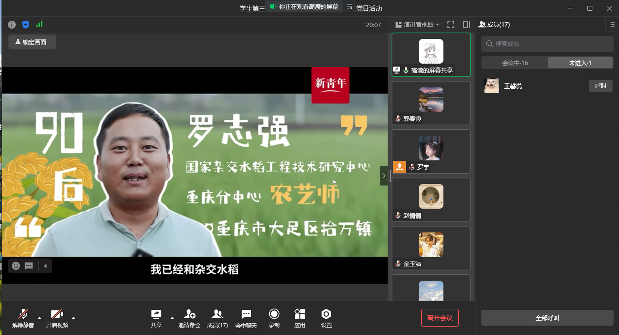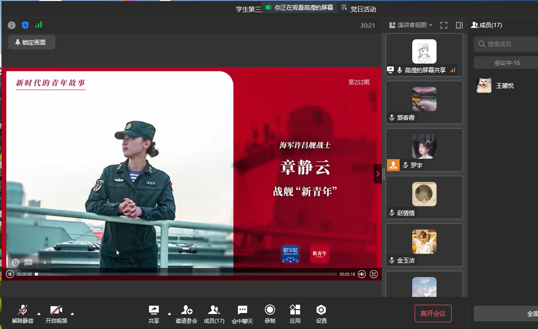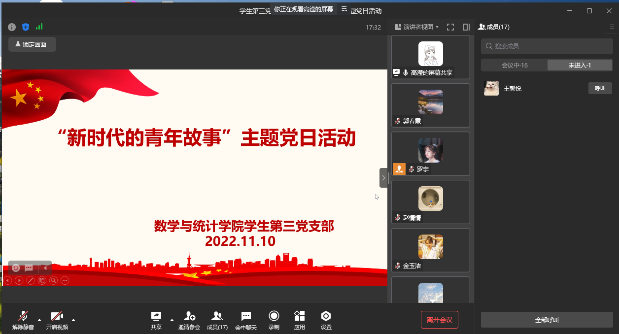 11月10日中午12:30,英国365上市公司员工第三党支部在线上开展了“学习党的二十大精神,讲述新时代青年故事”主题党日活动,本次会议由支部组织委员高滢同学主持,共16名党员参与。