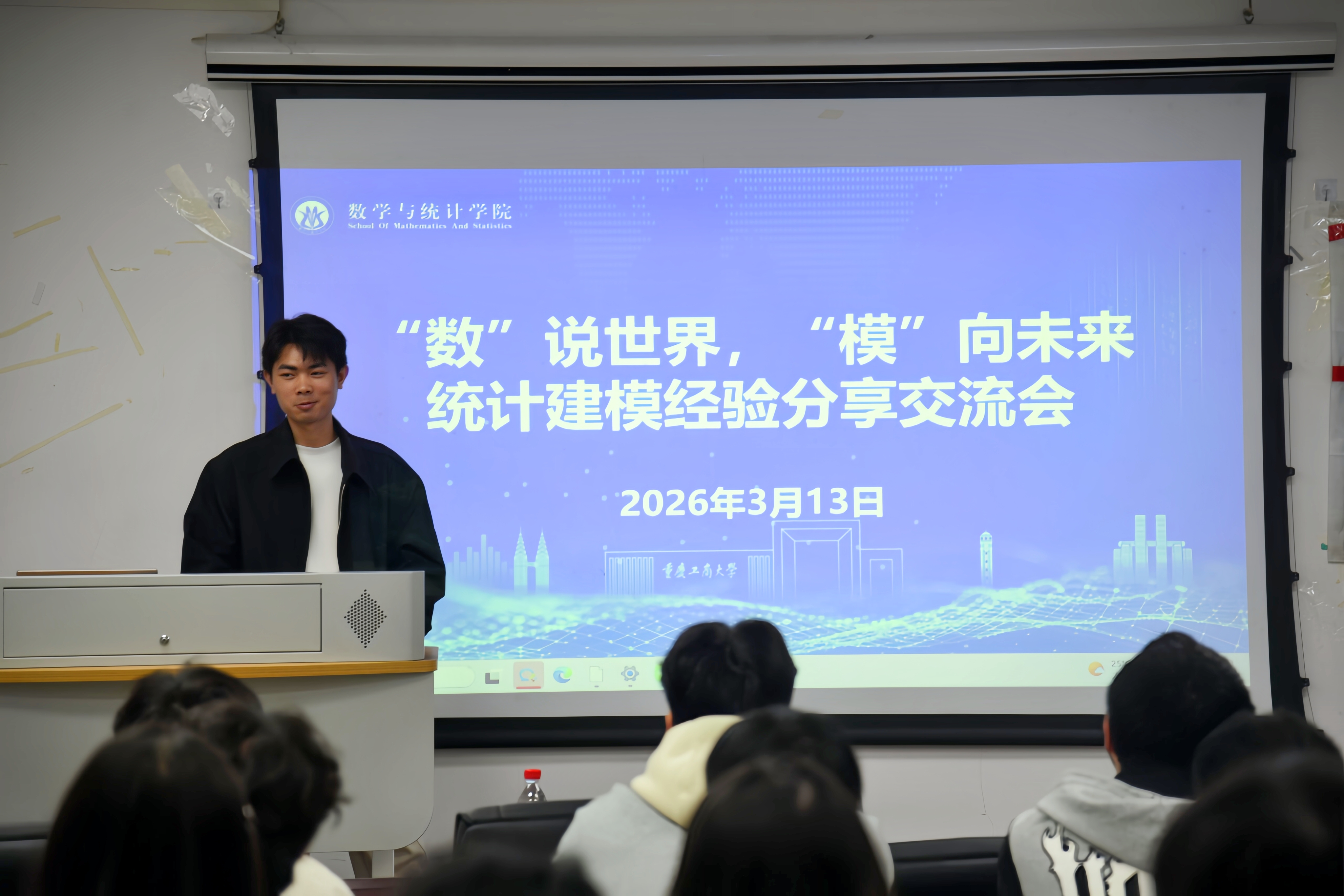 随后,多次斩获国家级竞赛奖项的张天佑学长以2025年全国老员工统计建模大赛国赛三等奖为例,分享选题建模、团队协作及论文撰写的全流程实战经验,提供可借鉴的实践技巧。