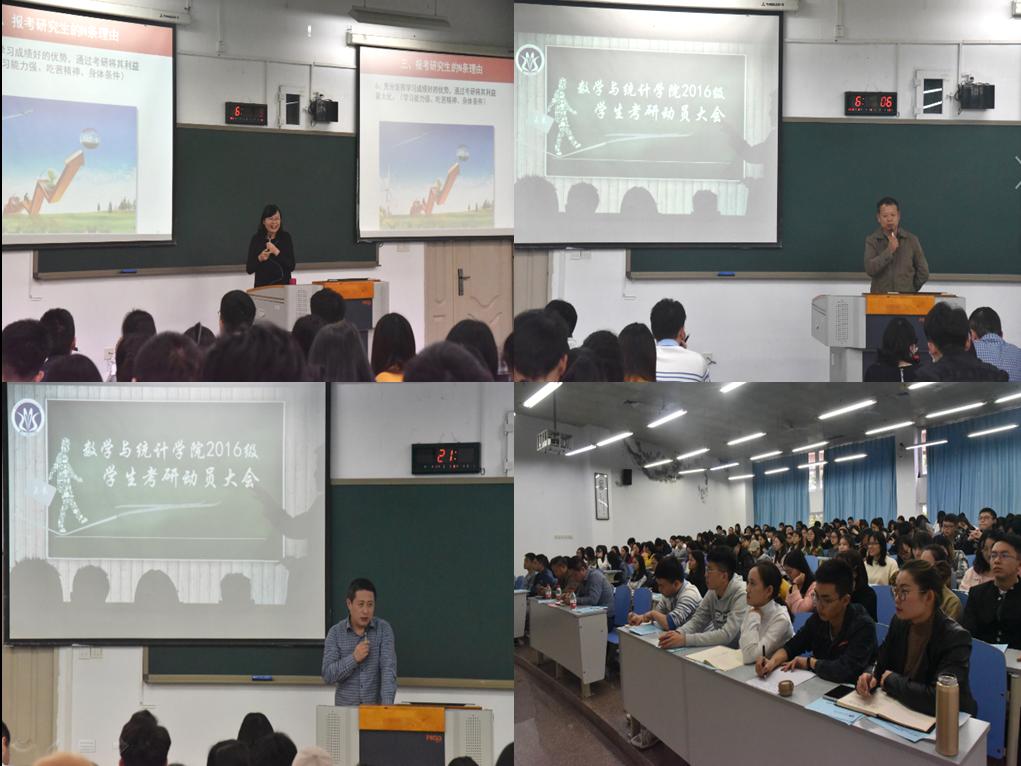 此次考研动员大会的成功召开,不仅使大三学子对目前的考研形势和备考工作有了更深刻的理解和认识,更是坚定了同学们的考研决心,以确立考研目标,营造良好的学习氛围,促进学风建设,让数统学子能坚定目标,努力奋斗,昂首阔步的走在考研路上。