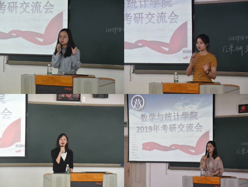 考研代表们依次为同学们作分享。被上海财经大学录取的张路榆从自己每个学科的复习方法上为大家做了详细的分享,并建议同学们不要盲目地做预测卷,要多给自己时间去反思。考上重庆大学的吴柯宇分享了在备考时的心态,并向同学们推荐复习材料,她介绍了拒绝疲劳式学习,做好短、长期的计划等提高学习效率的方法。被中山大学录取的何杨着重分享了研究生复试的问题,她分享了坎坷的补录之旅,并阐述了她对“为什么要考研”这一问题的独到见解。张凌睿在她的分享中提到大家一定要明确考研的目的,有考研决心,才会有足够的动力去面对考研。随后,同学们围绕考研问题进行提问,代表同学们进作详细解答。最后,余老师总结到考研是择优录取,优胜劣汰的机制,只有大家足够坚定,愿意付出,并且足够自信,才能在考研大军中脱颖而出。