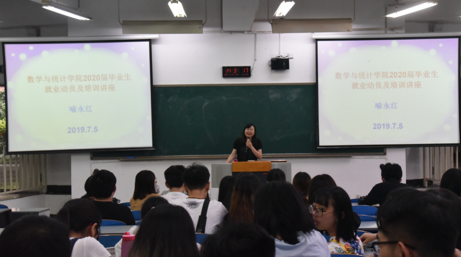 喻书记首先从当前就业形势,毕业生就业存在的不足,就业的相关政策,做好就业准备等四大方面,对公司近四年毕业生人数、2019届毕业生就业市场和形势进行分析,帮助同学们更加深刻地认识就业形势,随后喻书记指出当前毕业生还存在定位不足、职业规划意识和能力不足、准备不充分、基层就业观念差等问题,她表示希望同学们能避免出现以上问题,并全面做好就业准备,主动应对就业挑战。最后喻书记提醒同学们要注意学习求职技巧、重视求职安全。