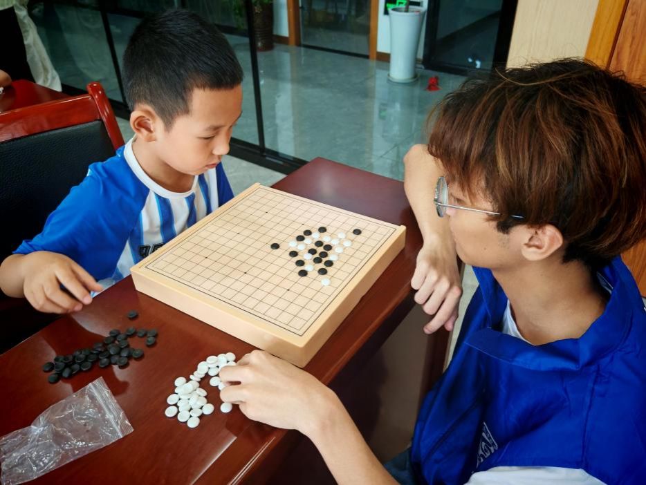 棋类小游戏中,张礼阳同学参与到五子棋的游戏中,和小朋友对弈。下棋不仅能够锻炼青少年儿童的独立思考能力,也体现了竞技精神,调动了青少年儿童们参与活动的热情。
