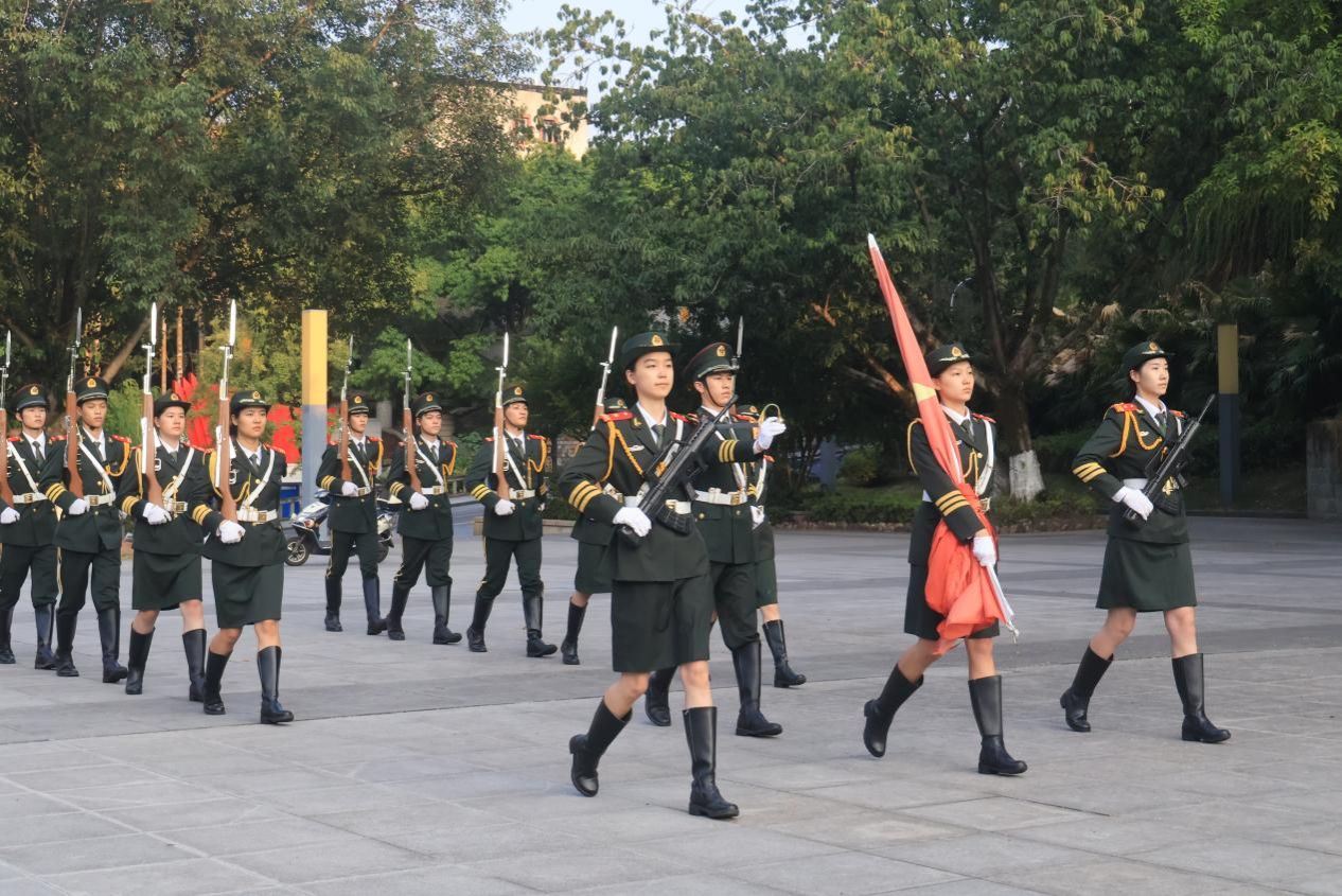 清晨,东方秋日缓缓升起。国旗护卫队成员眼神坚定,迈着铿锵有力的步伐护卫神圣的五星红旗入场,随着《义勇军进行曲》的响起,在场人员庄严肃立,齐唱国歌,向着国旗行注目礼。随后,公司2023级数据科学一班的陈时秀同学做了“警钟长鸣,踏浪奋进”为题的国旗下讲话。她在演讲中表示,历史是最好的教科书,也是最好的清醒剂,呼吁广大青年以史为鉴,砥砺前行,少年强则国强,吾辈青年团结一致,共执一笔书写灿烂未来。百年回眸,山河无恙,忠魂陨落,浩气长存,让九一八的警钟长鸣,踏浪前行去开启中国的蓝图。铭记居安思危,以青春之名赴时代之约。