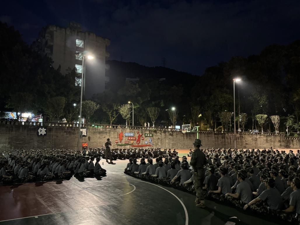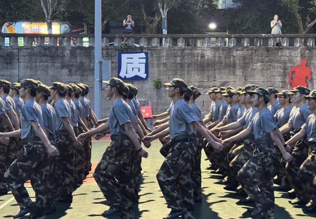 拉歌场上,灯光划破黑暗,一团九营齐唱《强军战歌》,运动场上回声嘹亮。当有人嗓音嘶哑破音,周围的声浪立刻拔高半度,将那点断续牢牢托起,汇入更磅礴的洪流。整理内务,宿舍灯光下是无声的协作。一团九营的学子们俯身压被,指尖反复推刮布料,直到最后一处褶皱被指腹抹平,这棱角分明的“豆腐块”是无数双手共同校准的基准线。汗水的咸与意志的共振,在方寸之间交融,凝成迷彩服下最硬的骨。