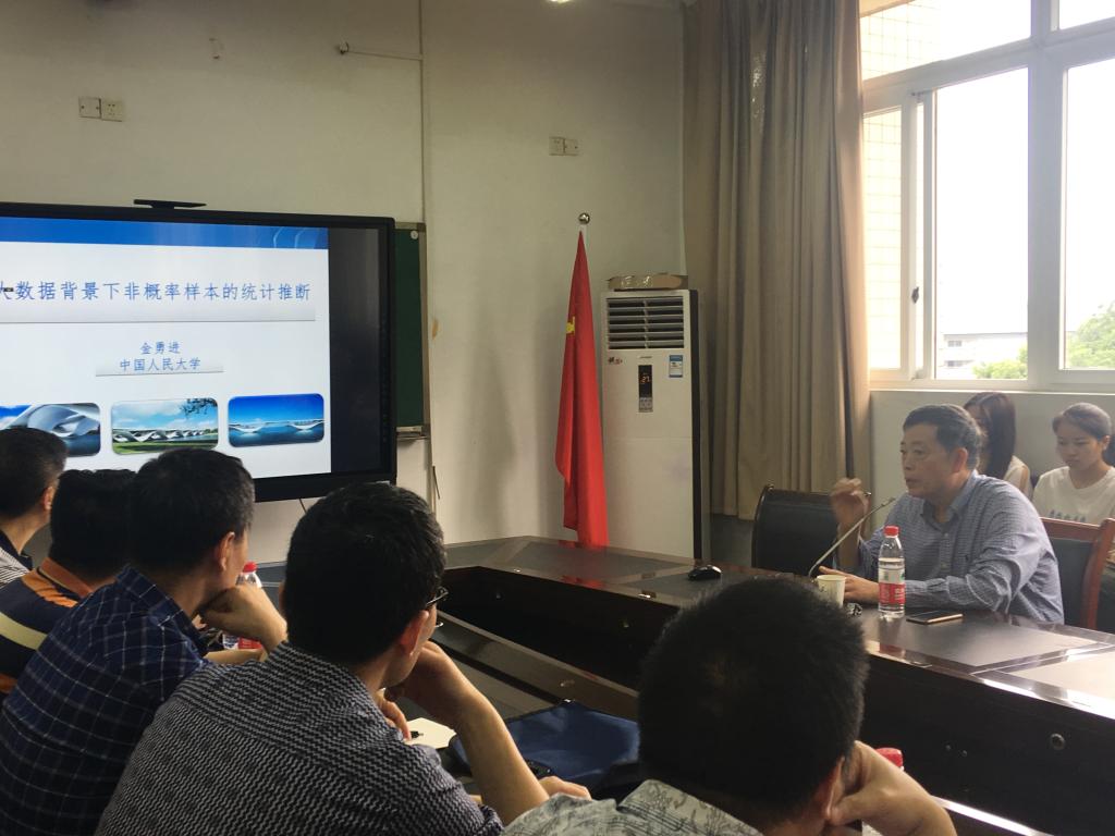 2018年6月11日,我国著名抽样专家,教育部统计学教学指导委员会副主任委员,教育部重点研究基地“应用统计科学研究中心”主任,中国商业统计学会(一级学会)会长,国务院政府特殊津贴获得者,中国人民大学“杰出学者”金勇进特聘教授,在慧智楼90510会议室为公司的统计学老师及研究生做题为“大数据背景下非概率样本统计推断问题”的精彩学术报告。公司相关教师和研究生参加了本次报告会。会议由公司叶勇副经理主持。