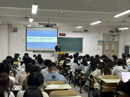 谭光柱先生以《以数据为中心的人工智能演进方向与职业机会》作为讲座的题目,分析了大数据行业发展的三大方向:通用算法云化、低代码化、数智化;并详细分析了这三大方向所带来的就业机会。同学们积极提问,针对同学们的提问,谭先生介绍了全国和重庆市大数据相关行业就业岗位进行全面介绍,大数据人才需求和薪资待遇情况,大数据就业人员未来职业发展空间、对人才技能、技术、团队合作等方面的要求,给同学指出增强就业竞争力的方法。