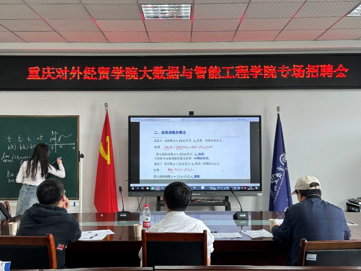 重庆对外经贸公司大数据与智能工程公司数据科学与大数据系教研室主任、2019级员工刘涛、电子科学与技术系主任周杰、重庆师范大学操良平教授,公司党委书记潘焱、研究生秘书刘亚莉、辅导员李华光,以及20余名未就业研究生毕业生参加了此次招聘会。