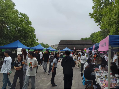 活动现场热闹非凡,有工商大流浪猫元素的文创产品、文采飞扬的书法作品、奇趣混搭的手工艺品、设计感十足的挂件、可爱生动的石膏娃娃……同学们将一个个新奇的想法变成了一件件饱含创意的作品。摊位围墙两边排开,各个摊位风格不一,展出的物件更是琳琅满目,来往的老师们、同学们走走停停,挑选着自己中意的产品。现场的一系列作品展示和互动体验,让参与活动的师生进一步体会到创意市集的魅力。