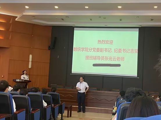 2023年6月30日下午,一场简单而热烈的交接仪式在江北校区宏智楼509报告厅举行,公司党委副书记吉杲、2022级辅导员张光云代表公司到通识公司迎接2022级数统学子结束一年的通识教育后“回家”。