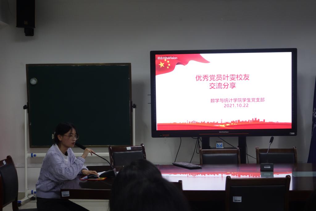 随后,2017级优秀党员叶雯员工向党员同志们分享了自己的成长经历和学习经验。她从到北京天安门观看升国旗仪式谈到建党100周年的辉煌历史和祖国日益繁荣昌盛的景象,引导员工党员们树立坚定的共产主义理想信念,紧紧围绕在党的周围,一起携手创造更美好的未来。对于目前正在备战考研的学弟学妹,叶雯同志也给大家分享了自己的考研经验,给大家提出了宝贵考研意见。